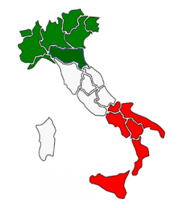 Ho fatto una nuova analisi dell’andamento epidemico. La mia analisi si ferma al 7 gennaio. Ho ancora una volta suddiviso il paese in regioni settentrionali, centrali e meridionali, secondo lo schema che si vede in figura.