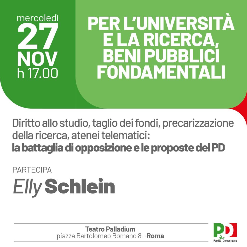Mercoledì 27 novembre 2024 il Pd ha organizzato a Roma un interessantissimo e attualissimo confronto sui temi di Università, Ricerca, finanziamenti, precariato, diritto allo studio. Organizzato e coordinato da Alfredo D’Attorre, responsabile Università in segreteria nazionale, che ha introdotto la iniziativa, spiegandone i motivi, e illustrando alcuni principali temi, questa manifestazione ha avuto una caratteristica peculiare: l’ascolto, da parte del Pd, di tante voci, non per forza tutte d’accordo, e non sempre consonanti con il Pd stesso: dalle organizzazioni studentesche e di precari, di università ed EPR, varie e di diversa natura, alle organizzazioni sindacali e altre associazioni; politici, parlamentari impegnati nelle Commissioni Istruzione (Verducci, D’Elia, solo per citarne alcuni), mondo accademico (rettori e professori: c’erano ad es. il rettore dell’Università di Roma Tre, come ovvio, in qualità di ospite -l’iniziativa si è svolta nel Teatro Palladium, sala dell’Università Roma Tre- e al tempo stesso rappresentante CRUI, e il rettore dell’Università di Bari). Il Pd continua una fase di ascolto e di discussione con le tante realtà, e si impegna a preparare una proposta complessiva organica dell’Università e della Ricerca, appunto, che tenga conto del precariato, dell’avanzamento di carriera e della valutazione, della valutazione della ricerca, della questione finanziamento e FFO, della pericolosa questione Università private telematiche, della mancata “stabilizzazione” dei fondi straordinari provenienti dal NGEU, che quindi porterà al “licenziamento” di decine di migliaia di “ricercatori” (sotto varie forme) negli Atenei e negli EPR; del gravissimo problema del diritto allo studio … negato: dal problema degli alloggi per i fuorisede (si stima che ci siano alloggi solo per il 5% dei fuorisede), alla ricomparsa, finiti i fondi straordinari del NGEU, dello studente idoneo a ricevere la borsa di studio … senza borsa!